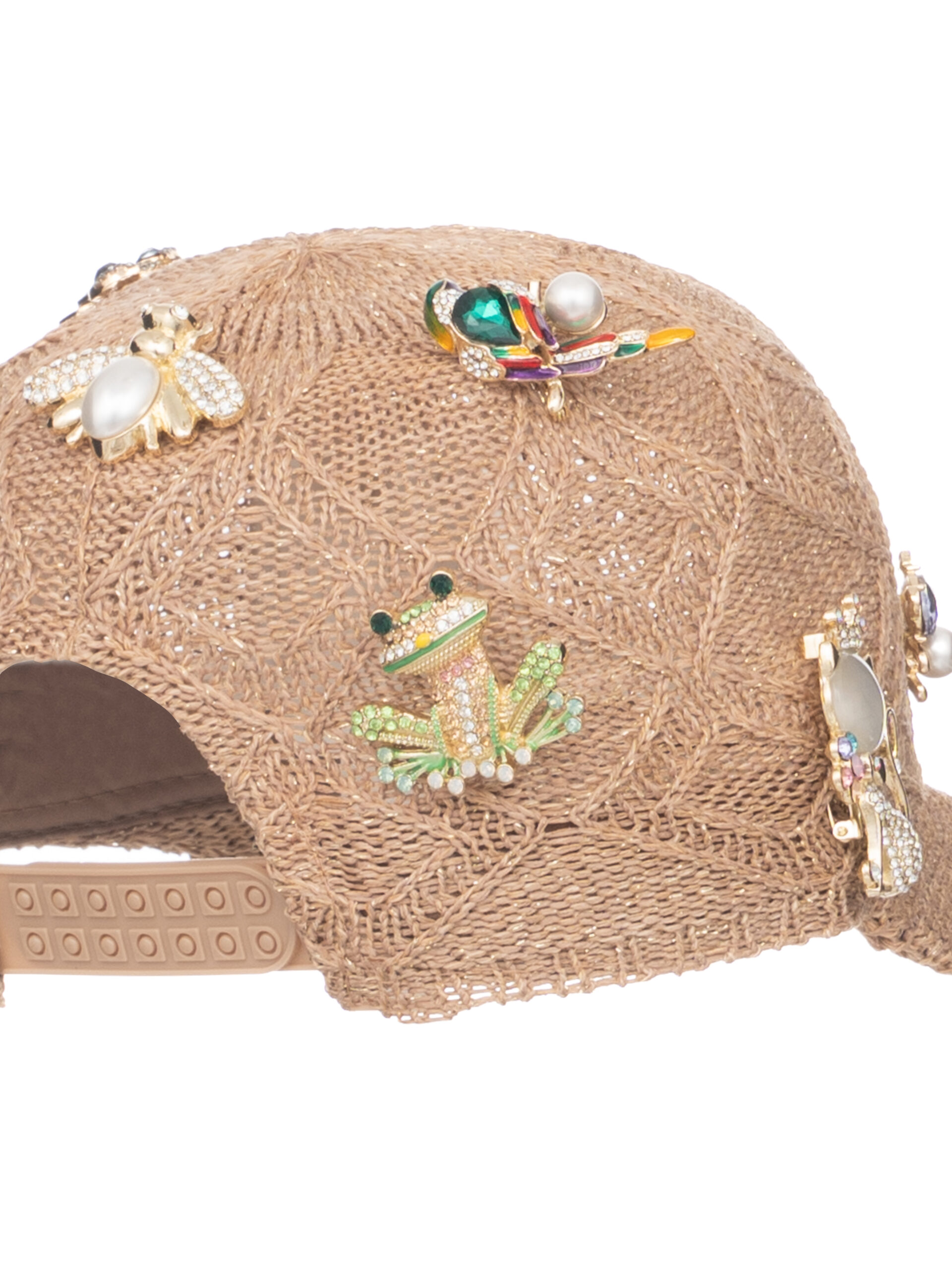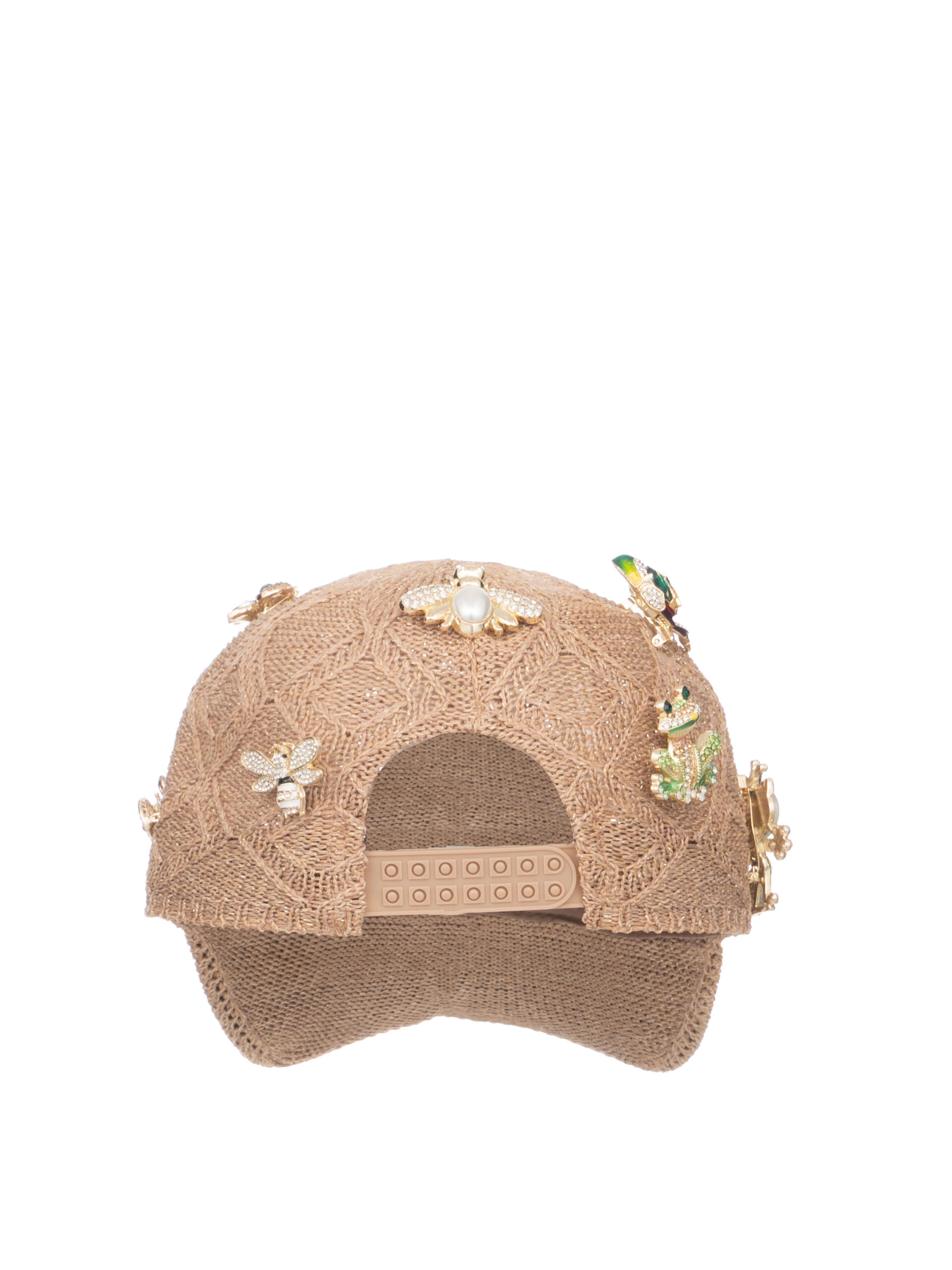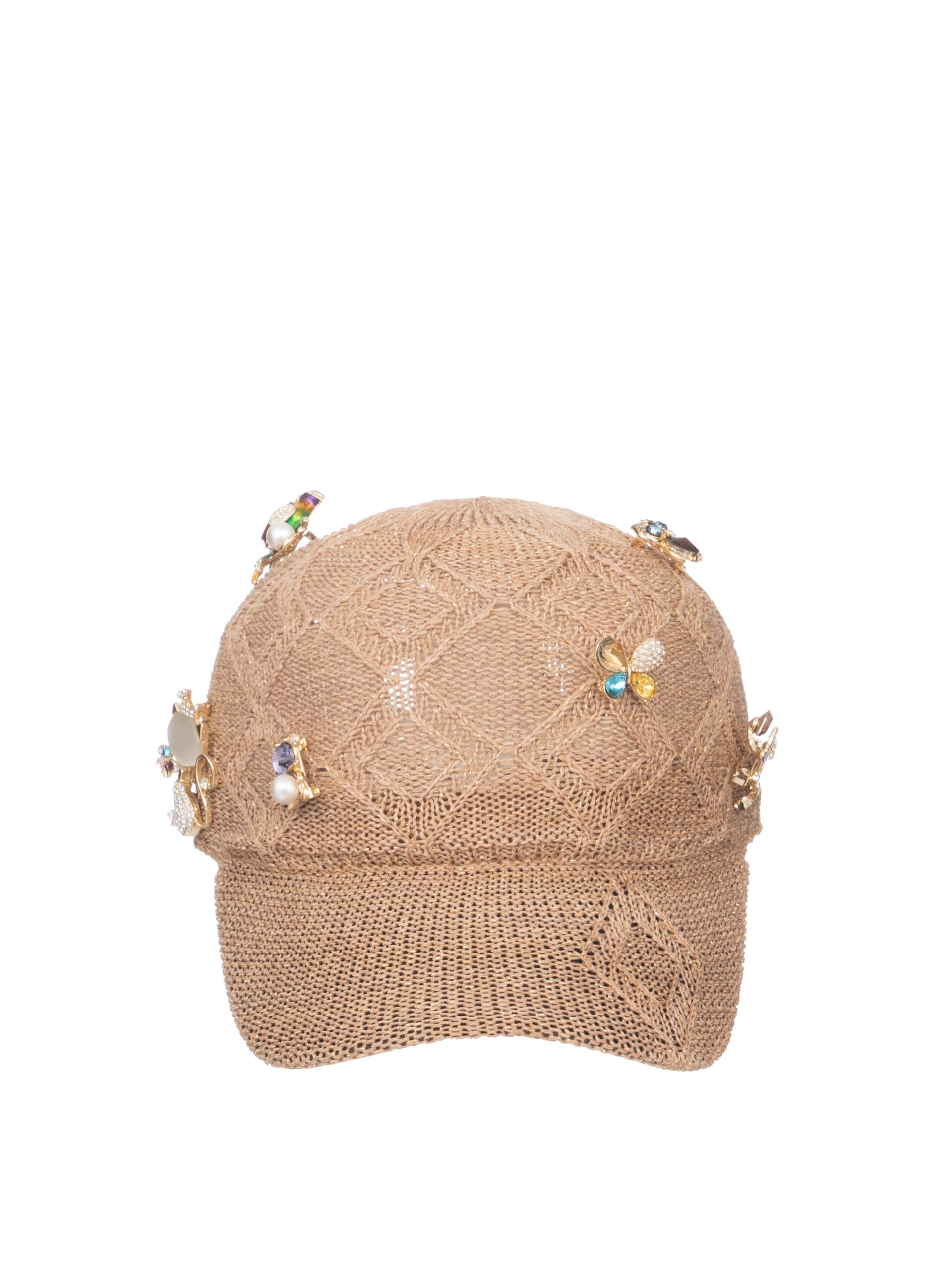 In tessuto chiaro con accessori su tutto il cappello